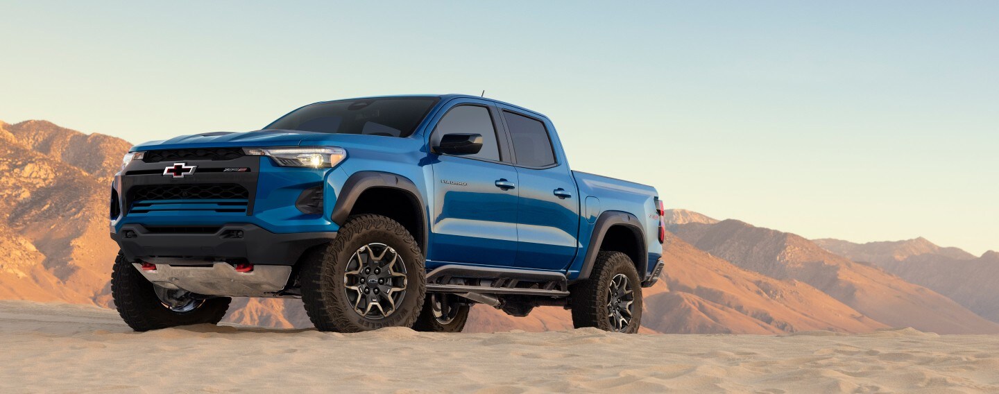 - ZR2: The ultimate off-road Chevy Colorado with Multimatic DSSV dampers, standard 4WD, and unique fascia for improved approach/departure angles