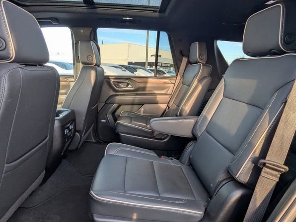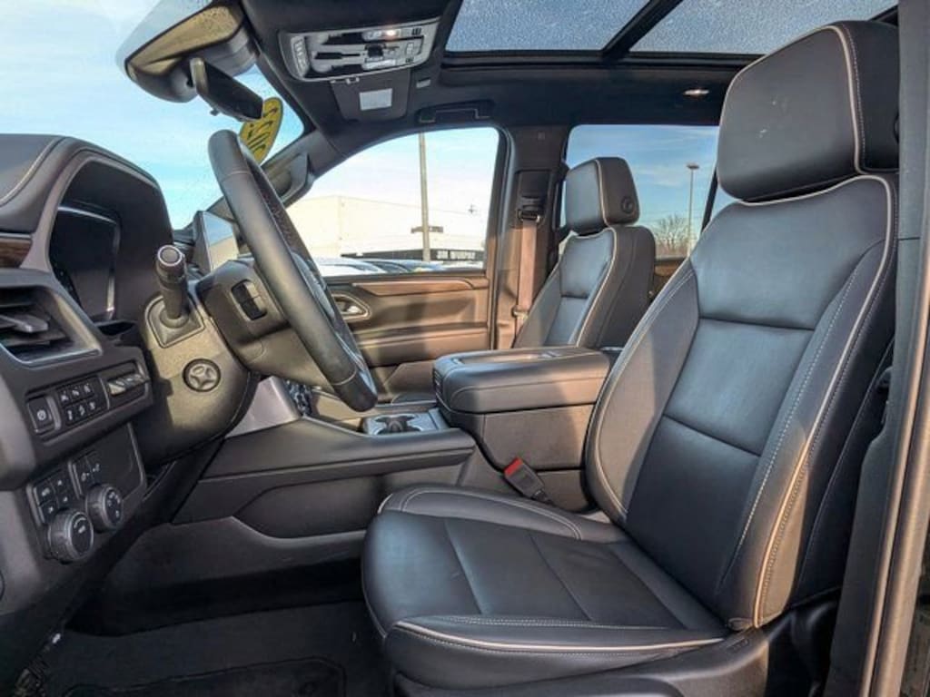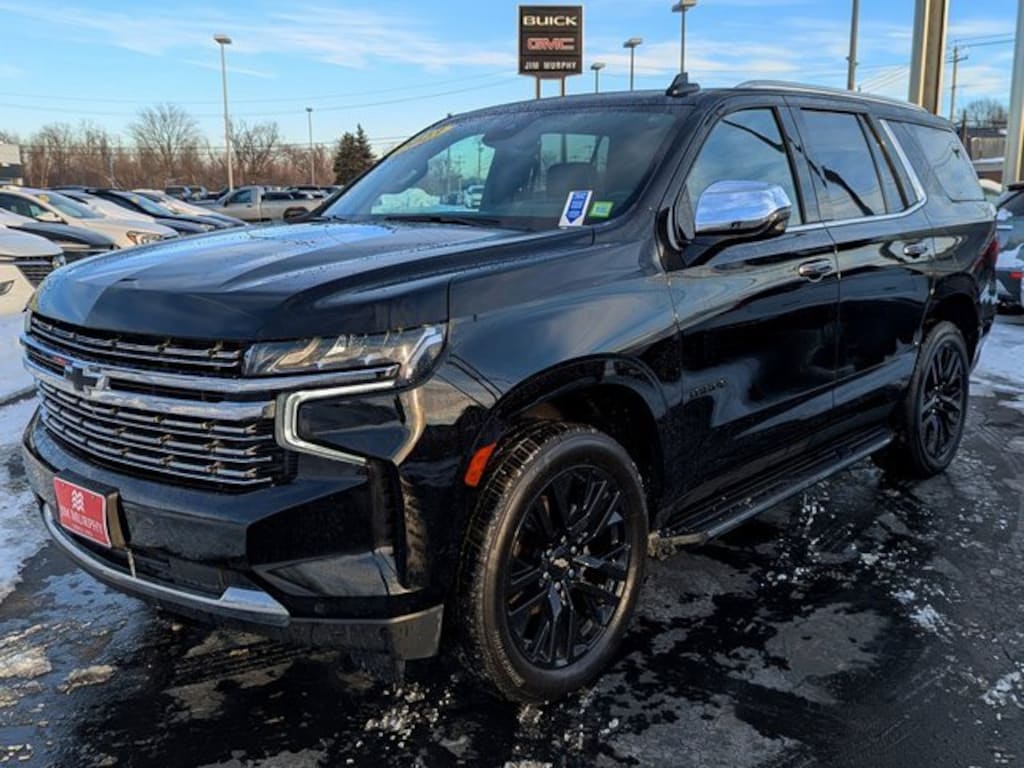 Recent Arrival! 2023 Chevrolet Tahoe Premier Black 4WD EcoTec3 5.3L V8 *CARFAX 1 OWNER*, BLUETOOTH, USB / AUX INPUTS TO PLAY MUSIC, GPS NAVIGATION, *REAR VIEW CAMERA*, PANORAMIC MOONROOF, *LEATHER SEATS*, HEATED FRONT SEATS, REMOTE STARTER, 4 WHEEL DRIVE - Perfect for Buffalo Winters!, 4WD, Jet Black Leather, 15 Diagonal Multi-Color Head-Up Display, 1st & 2nd Row Color-Keyed Carpeted Floor Mats, 2-Speed Active Electronic AutoTrac Transfer Case, 3rd Row 60/40 Power-Folding Split-Bench Seat, 4-Wheel Disc Brakes, ABS brakes, Adaptive suspension, Auto-Dimming Inside Rear-View Mirror, Auto-leveling suspension, Automatic temperature control, Bose 10-Speaker Centerpoint Surround Audio Sys Ft, Bright Front & Rear Door Sill Plates, Chrome Door Handles w/Body-Color Strip, Chrome Mirror Caps, Color-Keyed Carpeting Floor Covering, Driver & Front Outboard Passenger Airbags, Dual Exhaust System, Dual front impact airbags, Dual front side impact airbags, Dual-Pane Power Panoramic Sunroof, Electronic Stability Control, Enhanced Display & Alert Package, Enhanced Driver Information Center, Floor Console, Front dual zone A/C, Hands-Free Rear Power Programmable Liftgate, HD Surround Vision, Heated 2nd Row Outboard Seats, Heated Steering Wheel, Hill Descent Control, Infotainment Display, Inside Rearview Auto-Dimming Rear Camera Mirror, Lane Change Alert w/Side Blind Zone Alert, LED Daytime Running Lamps, Magnetic Ride Control Suspension, Memory Settings, Navigation System, Outside Heated Power-Adjustable Mirrors, Power Liftgate, Power Release 2nd Row Bucket Seats, Power Tilt & Telescopic Steering Column, Preferred Equipment Group 1LZ, Premium Package 2, Rear Camera Mirror Washer, Rear Cross Traffic Alert, Rear Pedestrian Alert, Remote Start, Safety Alert Seat, SiriusXM Radio w/360L, Steering wheel mounted audio controls, Telescoping steering wheel, Tilt steering wheel, Universal Home Remote, Wheels: 22 Multi-Spoke Gloss Black (LPO), Wireless Charging, Wrapped Steering Wheel.