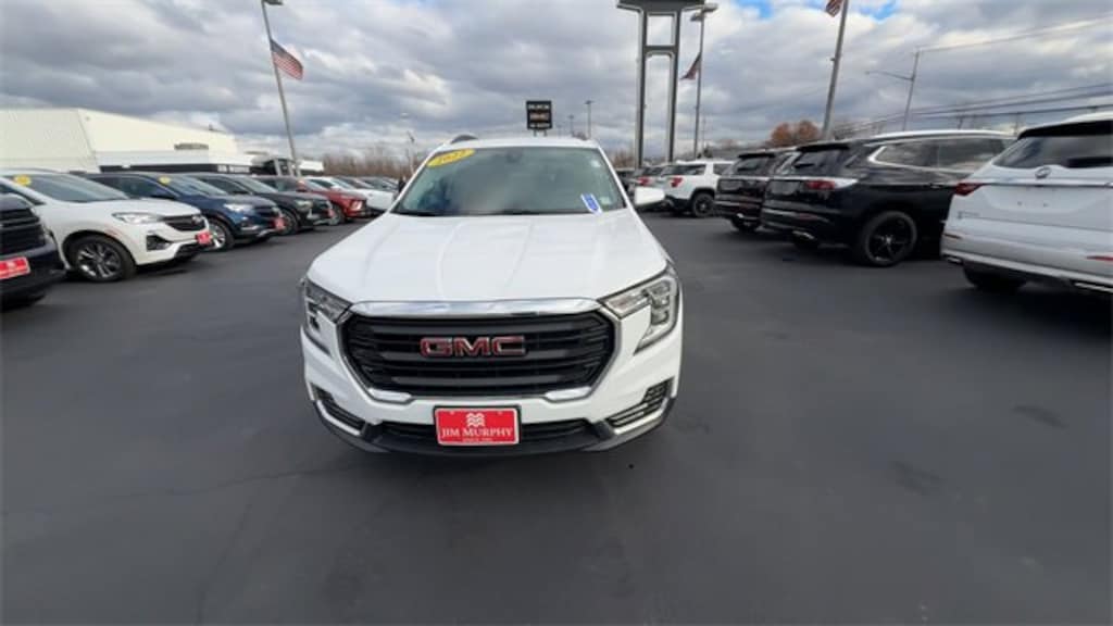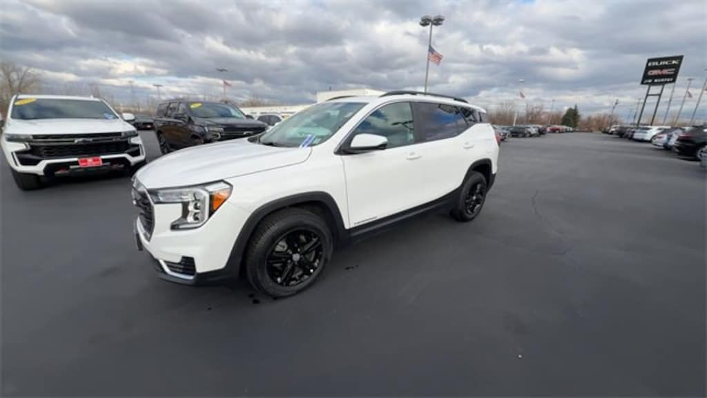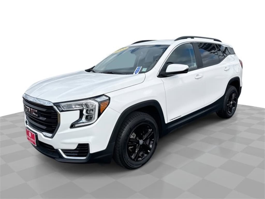 Recent Arrival! 2022 GMC Terrain SLE Summit White AWD 1.5L DOHC *CLEAN CARFAX NO ACCIDENTS*, BLUETOOTH, *REAR VIEW CAMERA*, *LEATHER SEATS*, REMOTE STARTER, ALL WHEEL DRIVE - Perfect for Buffalo Winters!, AWD, 2 USB Data Ports w/Auxiliary Input Jack, 4-Wheel Disc Brakes, 6-Speaker Audio System Feature, 8-Way Power Driver Seat Adjuster, ABS brakes, Adaptive Cruise Control, Automatic temperature control, Bluetooth® For Phone, Driver & Front Passenger Heated Seats, Driver Convenience Package, Dual front impact airbags, Dual front side impact airbags, Dual-Zone Automatic Climate Control, Fully automatic headlights, GMC Pro Safety Plus, Lane Change Alert w/Side Blind Zone Alert, Lane Departure Warning System, Outside Heated Power-Adjustable Mirrors, Power Driver Lumbar Control, Power Programmable Rear Liftgate, Preferred Equipment Group 3SA, Radio: GMC Infotainment Audio System w/7 Display, Rear Cross-Traffic Alert, Rear Park Assist, Remote Start, Roof-Mounted Luggage Rack Side Rails, Safety Alert Seat, SiriusXM Radio, Steering wheel mounted audio controls, Telescoping steering wheel, Tilt steering wheel, Traction control, Wheels: 17 x 7 Silver Painted Aluminum, Wireless Apple CarPlay/Wireless Android Auto. 25/28 City/Highway MPG