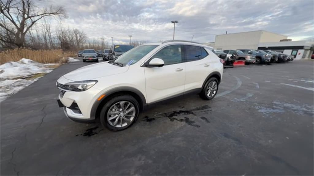 Recent Arrival! 2022 Buick Encore GX Essence White Frost Tricoat AWD ECOTEC 1.3L Turbo *CLEAN CARFAX NO ACCIDENTS*, BLUETOOTH, USB / AUX INPUTS TO PLAY MUSIC, *REAR VIEW CAMERA*, LOW MILES, PANORAMIC MOONROOF, *LEATHER SEATS*, HEATED FRONT SEATS, REMOTE STARTER, ALL WHEEL DRIVE - Perfect for Buffalo Winters!, 4-Wheel Disc Brakes, ABS brakes, Adaptive Cruise Control, Advanced Technology Package, Automatic Parking Assist w/Braking, Automatic temperature control, Convenience Package, Dual front impact airbags, Dual front side impact airbags, Electronic Stability Control, Experience Buick Package, Front dual zone A/C, Front fog lights, Front Intermittent RainSense Wipers, Fully automatic headlights, Hands Free Power Liftgate, Hands-Free Power Liftgate Package, HD Surround Vision, Head-Up Display, Heated Driver & Front Passenger Seats, Heated Steering Wheel, Lane Change Alert w/Side Blind Zone Alert, Memory Card Receptacle, Power Tilt-Sliding Moonroof, Preferred Equipment Group 1SL, Radio: 8 Diagonal Buick Infotainment System w/Nav, Rear Camera Mirror, Rear Camera Mirror Washer, Rear Cross Traffic Alert, Safety Package II, SiriusXM w/360L, Steering wheel mounted audio controls, Telescoping steering wheel, Tilt steering wheel, Traction control, Wheels: 18 Aluminum w/Chrome Inserts, Wireless Apple CarPlay/Wireless Android Auto, Wireless Charging. 26/29 City/Highway MPG