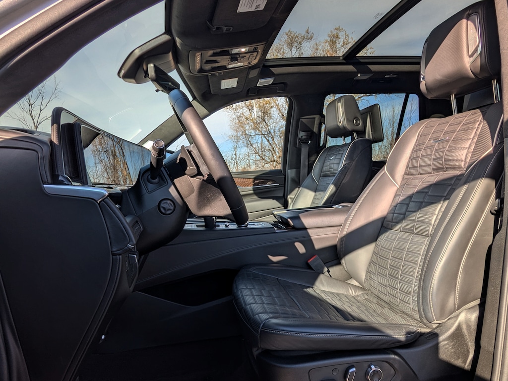 Recent Arrival! 2023 Cadillac Escalade Premium Luxury Platinum Argent Silver Metallic AWD 6.2L V8 *CLEAN CARFAX NO ACCIDENTS*, *CARFAX 1 OWNER*, BLUETOOTH, USB / AUX INPUTS TO PLAY MUSIC, *REAR VIEW CAMERA*, LOW MILES, *LEATHER SEATS*, HEATED FRONT SEATS, PREMIUM WHEELS, REMOTE STARTER, 4 WHEEL DRIVE - Perfect for Buffalo Winters!, AWD, Jet Black Leather, 16.9 Diagonal OLED Infotainment Screen, 4-Wheel Disc Brakes, ABS brakes, Adaptive Cruise Control, Air Ride Adaptive Suspension, AKG Studio Reference 36-Speaker Audio System, Automatic Seat Belt Tightening, Door Lock & Latch Shields, Dual front impact airbags, Dual front side impact airbags, Electronic Limited-Slip Differential, Electronic Stability Control, Enhanced Automatic Emergency Braking, Enhanced Automatic Parking Assist, Exterior Parking Camera Rear, Floor Console w/Covered Storage, Front Auxiliary 12-volt Power Outlet, Front dual zone A/C, Fully automatic headlights, Glass Breakage Sensor, HD Radio, Heated & Ventilated Driver & Front Passenger Seats, Hitch Guidance w/Hitch View, Illuminating Front & Rear Sill Plates, Integrated Trailer Brake Controller, Navigation System, Platinum Interior Trim, Power Liftgate, Power Lumbar Massage Driver Seat, Power Lumbar Massage Front Passenger Seat, Power Panoramic Tilt-Sliding Sunroof, Preferred Equipment Group 1SG, Radio: AM/FM w/Navigation, Rear Camera Mirror, Rear Camera Mirror Washer, Rear Cross Traffic Alert, Rear Seat Entertainment System, Reconfigurable Full-Color Head-Up Display, Reverse Automatic Braking, Running Board Assist Steps, SiriusXM w/360L, Smart Trailer Integration Indicator, Soft Closing Front & Rear Doors, Steering wheel mounted audio controls, Teen Driver, Telescoping steering wheel, Theft-Deterrent Alarm System, Tilt steering wheel, Touring Package, Traction control, Trailer Side Blind Zone Alert, Vehicle Inclination Sensor, Vehicle Interior Movement Sensor, Wheels: 22 10-Spoke Polished Alloy, Wireless Apple CarPlay/Wireless Android Auto.Jim Murphy Buick GMC - The more you shop around, the better we look!