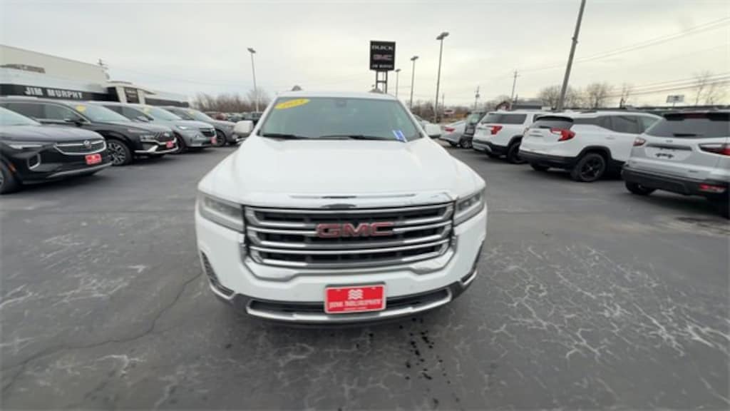 Recent Arrival! 2023 GMC Acadia SLE Summit White AWD 2.0L Turbocharged *CLEAN CARFAX NO ACCIDENTS*, *CARFAX 1 OWNER*, BLUETOOTH, USB / AUX INPUTS TO PLAY MUSIC, *REAR VIEW CAMERA*, HEATED FRONT SEATS, REMOTE STARTER, ALL WHEEL DRIVE - Perfect for Buffalo Winters!, AWD, Jet Black Cloth, 120-Volt Power Outlet, 4-Way Manual Driver Seat Adjuster, 4-Way Manual Passenger Seat Adjuster, 4-Wheel Disc Brakes, 6-Passenger (2-2-2 Seating Configuration), 6-Speaker Audio System Feature, 8-Way Power Driver Seat Adjuster, ABS brakes, Automatic temperature control, Brushed Aluminum Roof Rails, Driver Convenience Package, Dual front impact airbags, Dual front side impact airbags, Electronic Stability Control, Front dual zone A/C, Fully automatic headlights, Hands Free Power Programmable Liftgate, Heated Driver & Front Passenger Seats, Power Driver Lumbar Control Seat Adjuster, Preferred Equipment Group 3SA, Radio: AM/FM w/8 Diagonal Multi-Touch Display, Remote Start, SiriusXM Radio, Steering wheel mounted audio controls, Telescoping steering wheel, Tilt steering wheel, Traction control, Wheels: 18 Machined Aluminum w/Dark Accents, Wireless Apple CarPlay/Wireless Android Auto. 22/27 City/Highway MPG