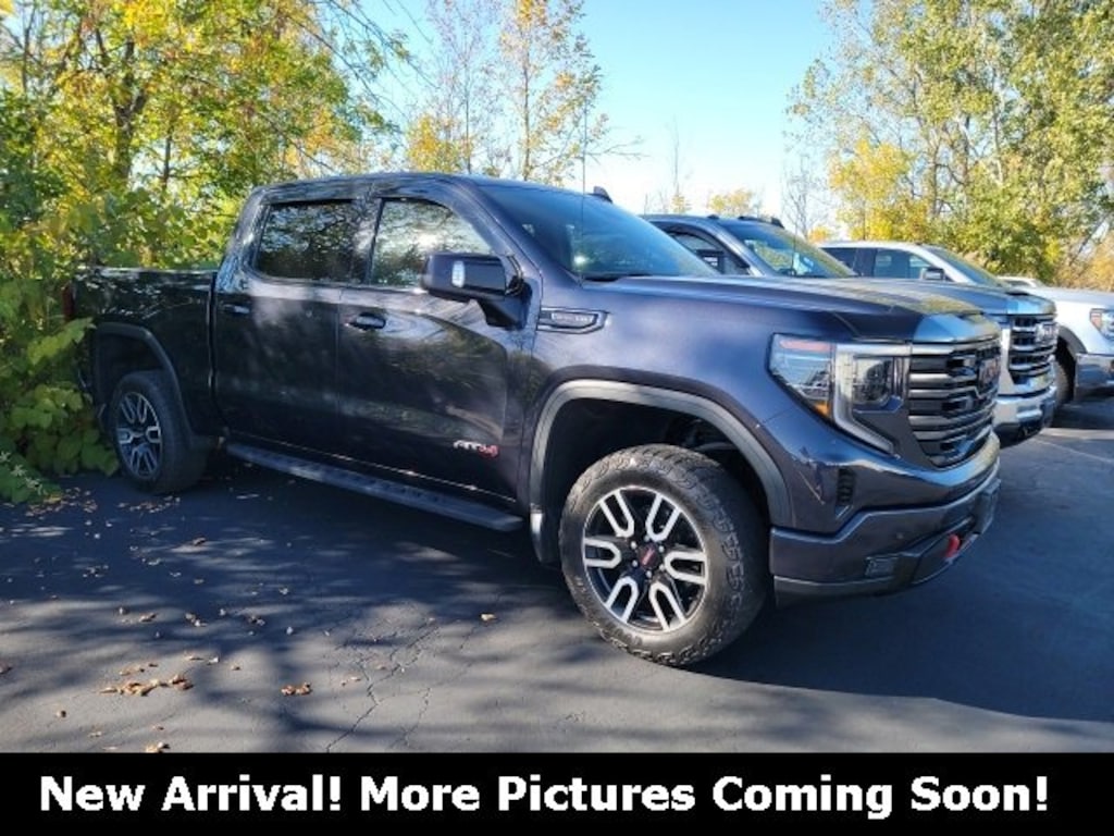 Recent Arrival! 2023 GMC Sierra 1500 AT4 Titanium Rush Metallic 4WD EcoTec3 6.2L V8 *CARFAX 1 OWNER*, BLUETOOTH, USB / AUX INPUTS TO PLAY MUSIC, *REAR VIEW CAMERA*, LOW MILES, *LEATHER SEATS*, HEATED FRONT SEATS, REMOTE STARTER, 4 WHEEL DRIVE - Perfect for Buffalo Winters!, *HEATED STEARING WHEEL*, 10-Speed Automatic, 4WD, Jet Black With Kalahari Accents Leather, 120-Volt Bed Mounted Power Outlet, 120-Volt Instrument Panel Power Outlet, 2 Charge/Data USB Ports Inside Center Console, 2 Type-C Charge-Only Rear USB Ports, 2 USB Ports, 220 Amp Alternator, 4-Wheel Disc Brakes, ABS brakes, Adaptive Cruise Control, AT4 Preferred Package, AT4 Premium Package, Auto-Locking Rear Differential, Automatic temperature control, Bed View Camera, Black Chrome Header & Grille Insert Bars, Color-Keyed Carpeting Floor Covering, Compass, Deep-Tinted Glass, Dual front impact airbags, Dual front side impact airbags, Electric Rear-Window Defogger, Electrical Steering Column Lock, Electronic Stability Control, Floor-Mounted Center Console, Front fog lights, Front Prem Floor Liners w/Removable Carpet Insert, Front Rainsensing Wipers, Fully automatic headlights, GMC Connected Access Capable, HD Surround Vision, Heated 2nd Row Outboard Seats, Heated Driver & Front Outboard Passenger Seating, Heavy-Duty Air Filter, Hill Descent Control, Hitch Guidance, Hitch Guidance w/Hitch View, In-Vehicle Trailering App, Integrated Trailer Brake Controller, Keyless Open & Start, LED Cargo Area Lighting, Multicolor 15 Diagonal Head-Up Display, Navigation System, Off-Road High Clearance Step (LPO), OnStar & GMC Connected Services Capable, Perimeter Lighting, Power Door Locks, Power Front Passenger Windows w/Express Up/Down, Power Front Windows w/Driver Express Up/Down, Power Rake & Telescoping Steering Column, Power Rear Windows w/Express Down, Power Sliding Rear Window w/Rear Defogger, Power Sunroof, Preferred Equipment Group 4SB, Premium Bose 7-Speaker Sound System, Push Button Start, Rear Camera Mirror, Rear Cross Traffic Braking, Rear Pedestrian Detection, Rear Prem Floor Liners w/Removable Carpet Insert, Rear Wheelhouse Liners, Red Recovery Hooks, Remote Vehicle Starter System, SiriusXM w/360L, Spray-On Pickup Bed Liner w/AT4 Logo, Steering Wheel Audio Controls, Steering wheel mounted audio controls, Technology Package, Telescoping steering wheel, Theft Deterrent System (Unauthorized Entry), Tilt steering wheel, Traction control, Trailer Camera Provisions, Trailer Side Blind Zone Alert, Trailering Package, Ultrasonic Front & Rear Park Assist, Universal Home Remote, Ventilated Driver & Front Passenger Seats, Wheels: 20 x 9 Machined Aluminum, Wi-Fi Hotspot Capable, Wireless Charging, Wireless Phone Projection.
