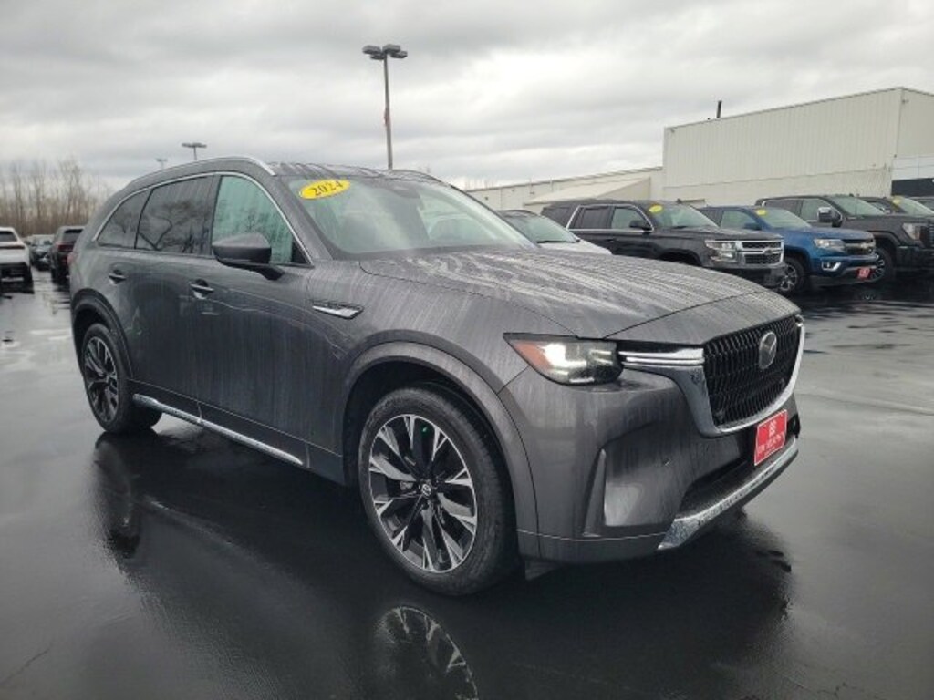 Recent Arrival! 2024 Mazda CX-90 3.3 Turbo S Machine Gray Metallic AWD I6 Turbo *CLEAN CARFAX NO ACCIDENTS*, *CARFAX 1 OWNER*, BLUETOOTH, USB / AUX INPUTS TO PLAY MUSIC, LOW MILES, PANORAMIC MOONROOF, *LEATHER SEATS*, HEATED FRONT SEATS, ALL WHEEL DRIVE - Perfect for Buffalo Winters!, 4-Wheel Disc Brakes, ABS brakes, AM/FM radio: SiriusXM, Automatic temperature control, Dual front impact airbags, Dual front side impact airbags, Electronic Stability Control, Exterior Parking Camera Rear, Front dual zone A/C, Fully automatic headlights, Heads-Up Display, Mazda Navigation System, Memory seat, Navigation system: MAZDA CONNECT, Power Liftgate, Power moonroof, Radio Broadcast Data System Program Information, Radio: AM/FM w/Bose Audio Sound System, Steering wheel mounted audio controls, Telescoping steering wheel, Tilt steering wheel, Traction control, Wheels: 21 x 9.5J Aluminum Alloy. 23/28 City/Highway MPGJim Murphy Buick GMC - The more you shop around, the better we look!